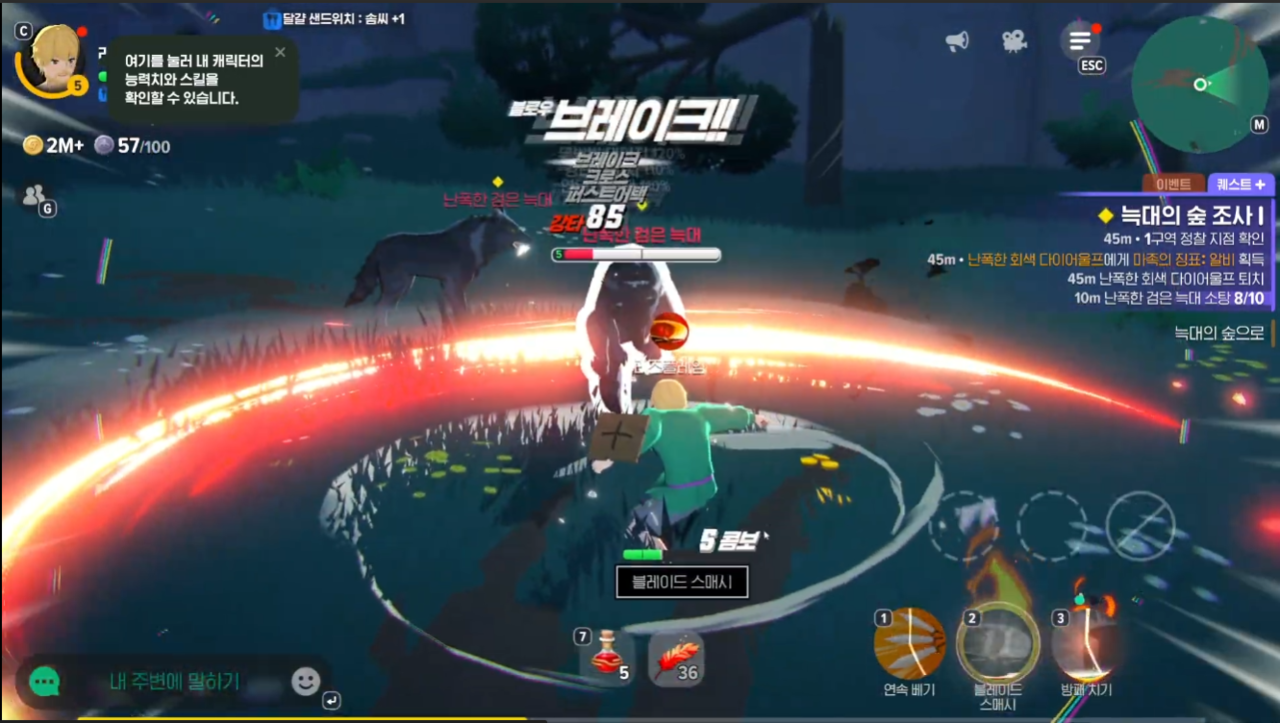 - 근거리 전사, 도적, 마법사 등 원하는 스타일대로 직업 선택 가능